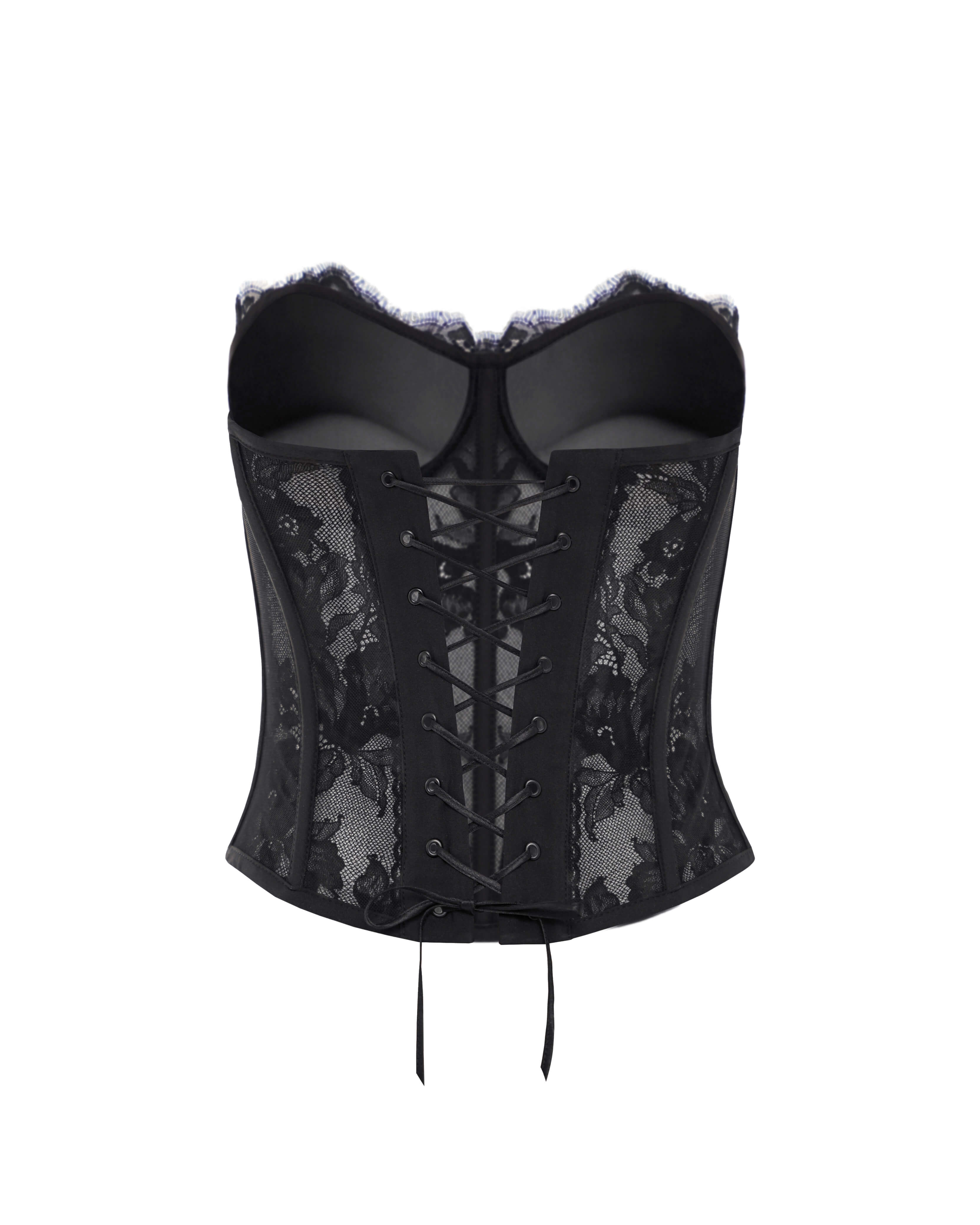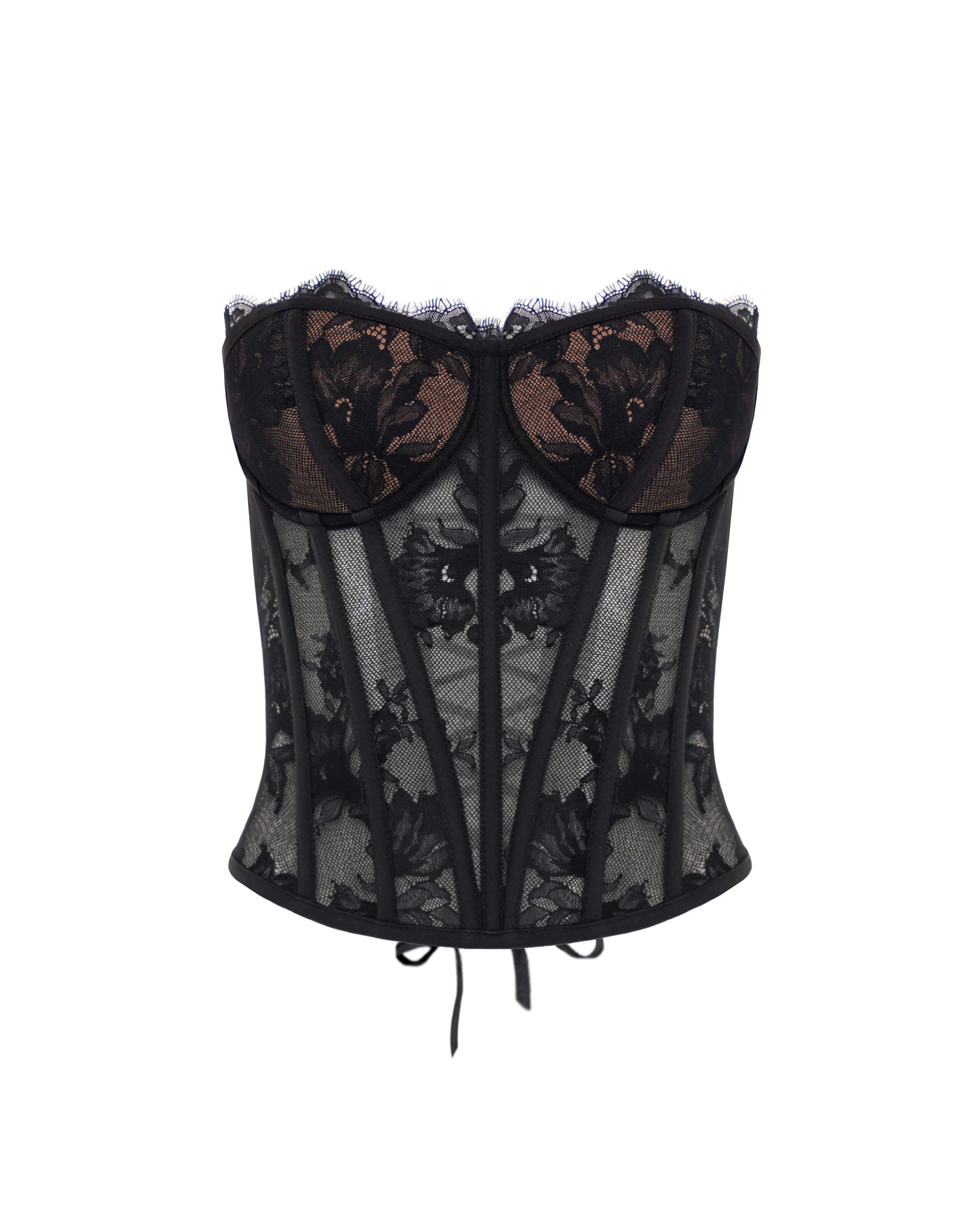 Benzersiz dantellerle zenginleştirilmiş ve feminen duruşu ile dikkatleri üzerine çeken bu inanılmaz korse herkesi kendine aşık ettirecek. Vücuda tam oturup saran bu korsenin destekli pedleri ekstra rahatlık sağlarken sırt kısmındaki ipler sayesinde giyip çıkarmasını daha rahat hale geliyor. Siyah tonlarında yapılmış bu parça, başka renk seçenekleri ile sitemizde.