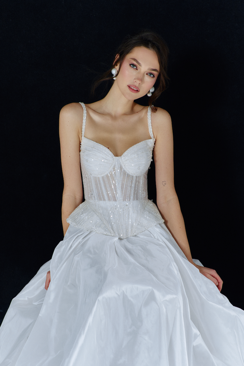 Taşlı işlemeli askılı korse