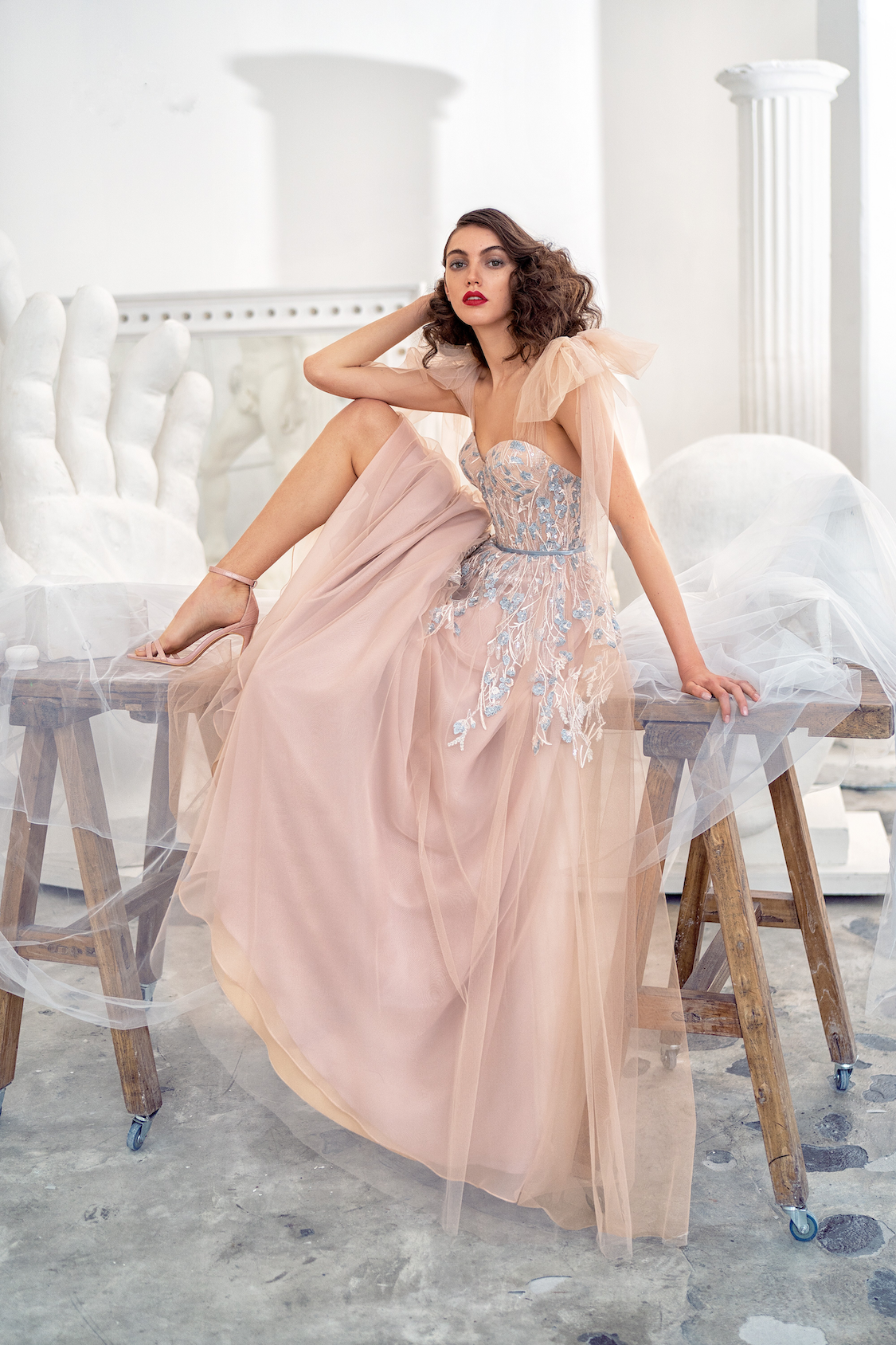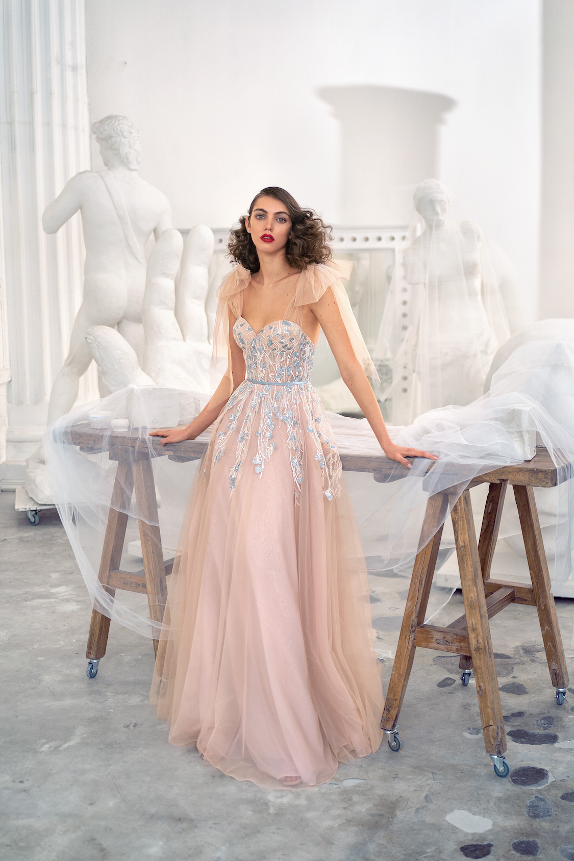 Nefes kesici görünen bu elbise sizi en üst seviyeye taşıyacaktır. Transparan tül askılar üzerindeki omuz detayları ve bel kısmındaki ince zarif kuşak görüntüye romantizm katarken, büstiyer korse üzerindeki gök mavisi çiçek işlemeleri soft bir şekilde eteğe geçip yayılıyor ve tasarımına ekstra feminenlik katıp bu abiyeyi benzersiz kılıyor.
